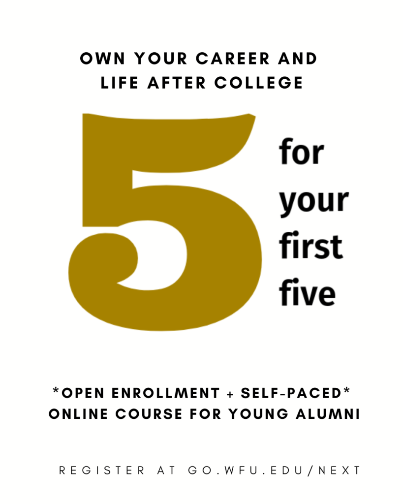 This inaugural conference, hosted by the WFU Alumni Personal & Career Development Center, is for any WFU alum looking for tactical job search strategies and tools, guidance on effectively navigating transitions, community and connection with the Wake Forest network, and encouragement as they seek their next steps.